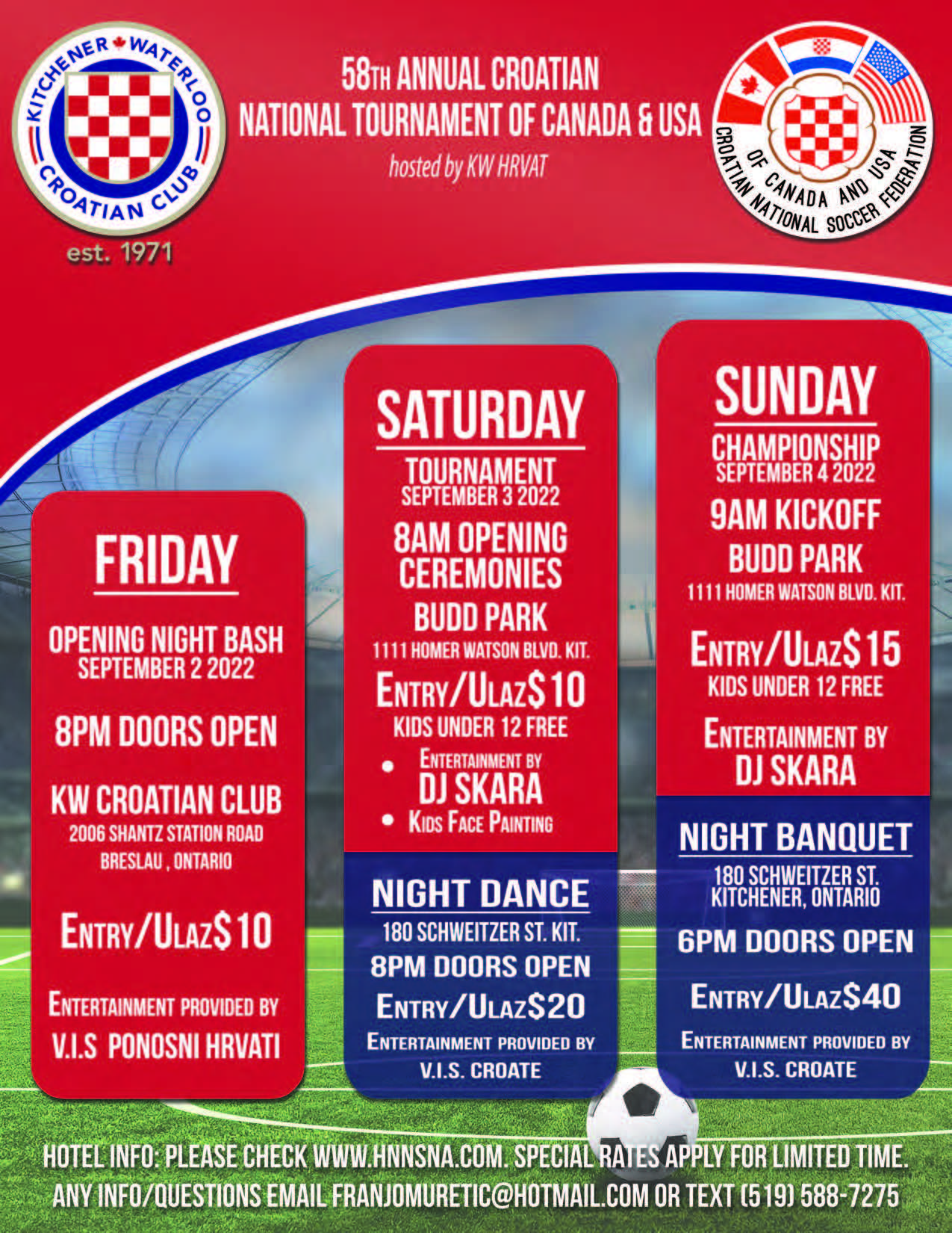 The United States tournament will be held in Cleveland, OH co-hosted by Zrinski Cleveland and Croatia Cleveland while the Canadian tournament will be held in Kitchener, ON hosted by Hrvat Kitchener.